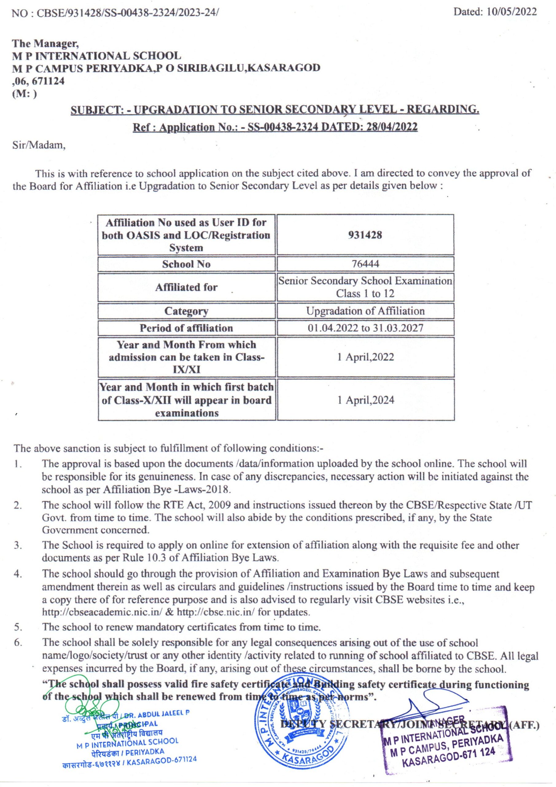 Senior Secondary Affiliation